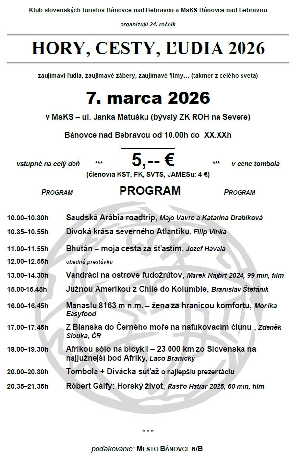 HORY, CESTY, ĽUDIA 2026 – 7. marca 2026