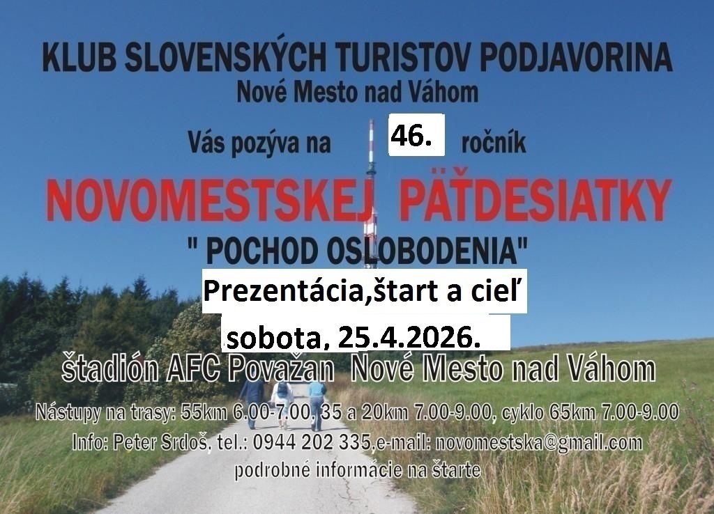 Klub slovenských turistov Tuláci Ilava organizuje dňa 2. 5. 2026 už v poradí 42. ročník turistického pochodu Ilavská 25-ka.