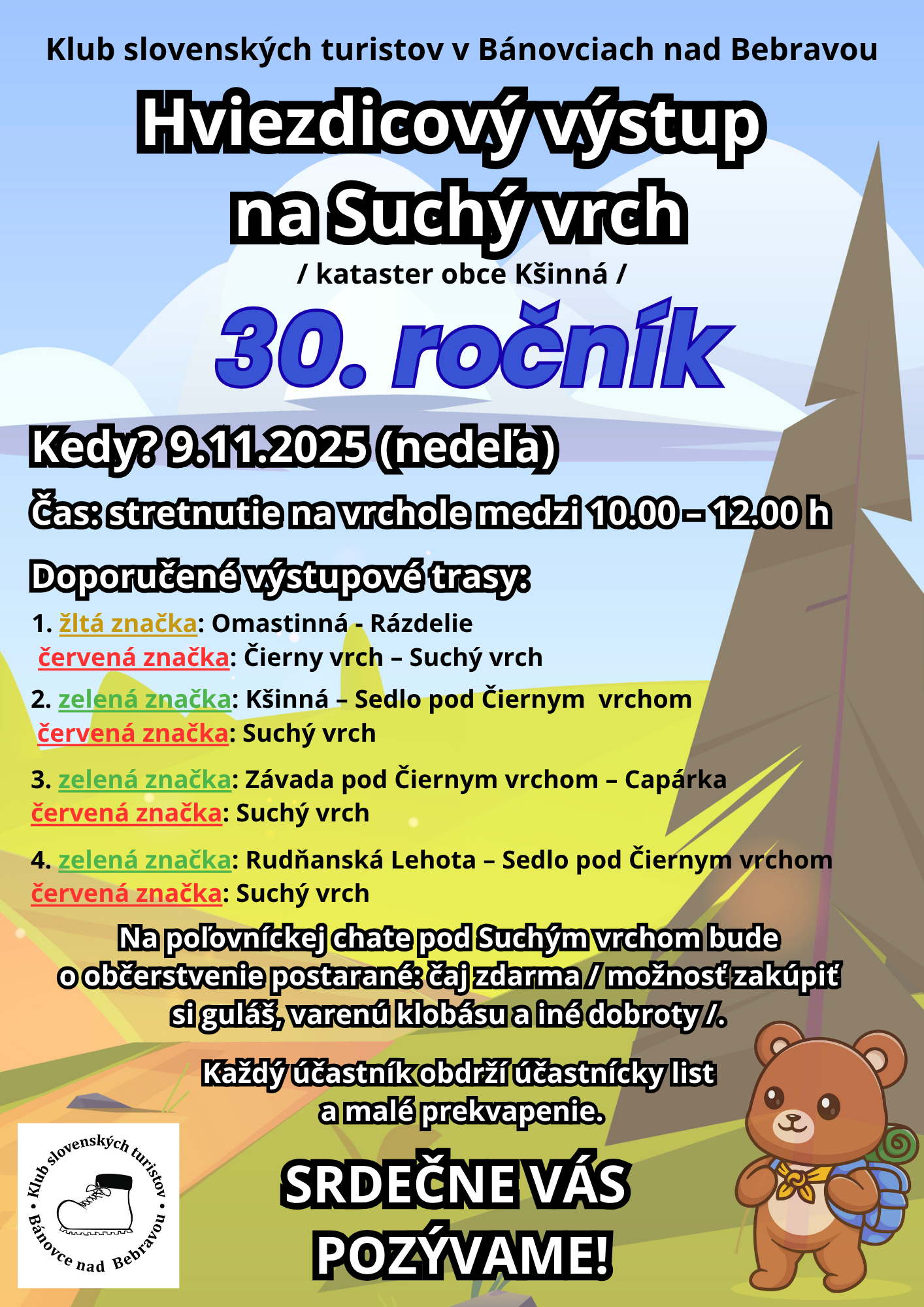 Klub slovenských turistov Bánovce nad Bebravou pozýva na Hviezdicový výstup na Suchý vrch